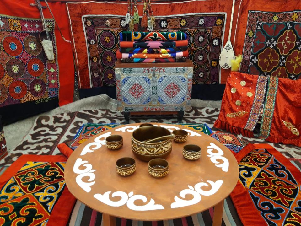 В преддверии национального праздника Наурыз здесь также представлена выставка из фондов музея с более чем сорока экспонатами, включая юрту с убранством.